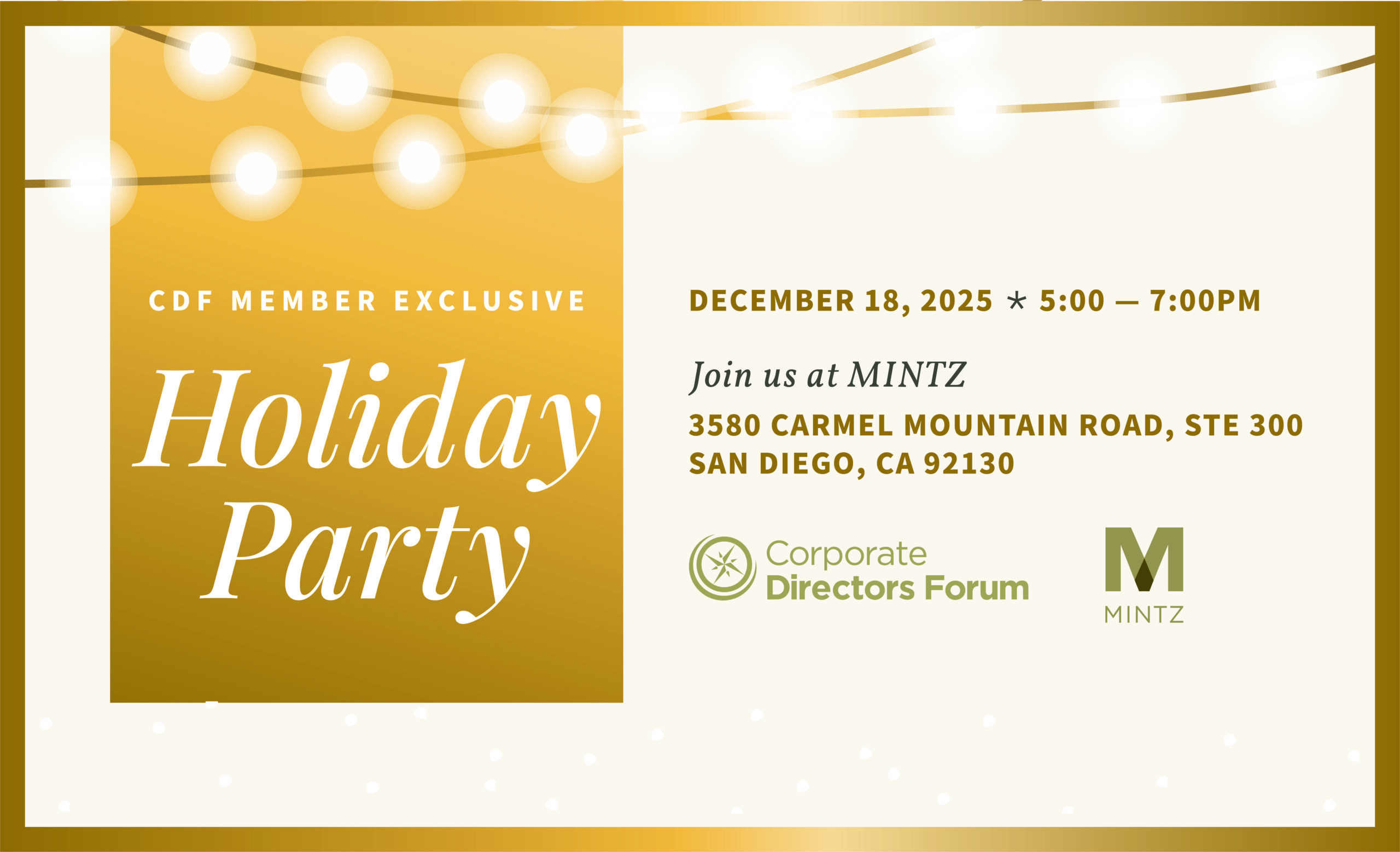Appetizers, beer, wine, and soft drinks will be served. This event is reserved for CDF members only. Parking will be validated by CDF. Special thanks to Mintz.